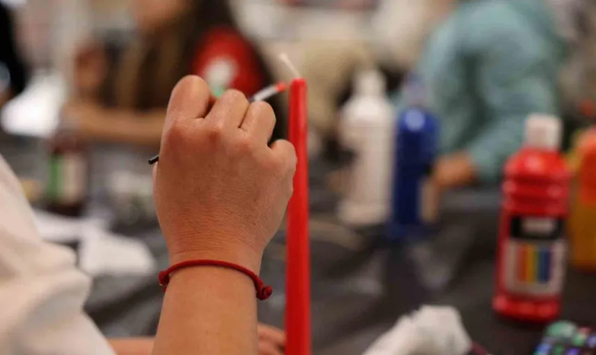 Atölyede 7-9 yaş aralığındaki çocuklar, ebeveynleriyle birlikte renkli boyalar ve simler kullanarak özgün mum tasarımları hazırladı. Gün boyu süren çalışmada aileler, çocuklarıyla birlikte hem üretmenin hem de kaliteli zaman geçirmenin keyfini yaşadı. Annelerin yoğun ilgisi dikkat çekerken, babaların da etkinlikte aktif rol alması gözlendi.