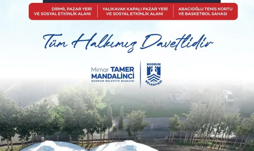 Bodrum Belediyesi, kentin sosyal dokusunu güçlendirmek ve vatandaşlara modern yaşam alanları sağlamak amacıyla hayata geçirilen Yalıkavak Kapalı Pazar Yeri ve Sosyal Etkinlik Alanı, Dirmil Pazar Yeri ve Sosyal Etkinlik Alanı ile Abacıoğlu Tenis Kortu ve Basketbol Sahası projelerinin açılışını düzenleyecek.