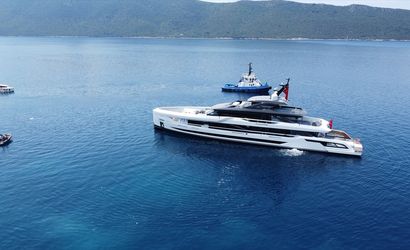 Muğla'nın Bodrum ilçesinde üretilen 1,2 milyar lira değerindeki süper yat 'Legasea', düzenlenen görkemli bir törenle denize indirildi.