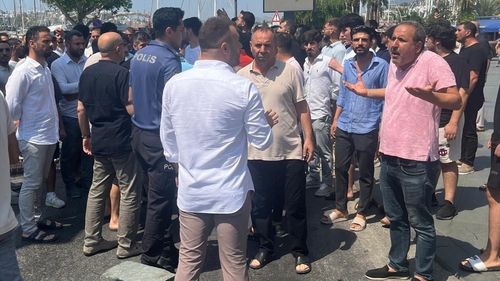 Bodrum'da esnaf, taklit ürün denetimine tepki olarak oturma eylemi yaptı ve yolu kapattı.