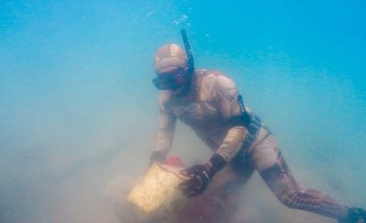 Muğla'nın Bodrum ilçesinde, "Denize en çok mavi yakışır" sloganıyla gerçekleştirilen deniz dibi temizliği etkinliği, Bodrum Belediyesi personelinden oluşan gönüllü dalgıçların katılımıyla devam etti.
