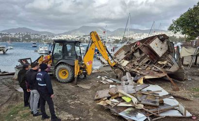 Karada bulunan tekneler kaldırılırken, bölgedeki derme çatma iskeleler de yıkıldı. Kimi amatör denizcilerin teknelerini römorklara yükleyip götürdükleri görüldü.