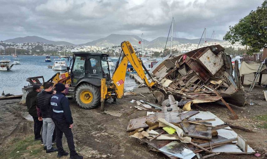 Operasyona Bodrum Kaymakamlığı, Milli Emlak Müdürlüğü, Bodrum Belediyesi ve Bodrum Bölge Liman Başkanlığı ekipleri katıldı. Ekipler, bölgeye iş makineleri ve vinçlerle müdahale etti.