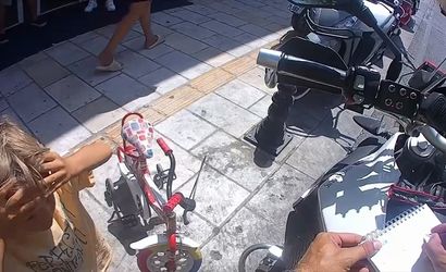 Genç, çocuğun yanına gelerek, "Neden kaldırımdan gidiyorsun?" diye sordu ve hemen kask uzmanı olarak bilgilendirici bir konuşma yaptı. Çocuğun bu sefer kaskı olmadığı bilgisini alarak, onun için bir ceza yazma kararı aldı.
