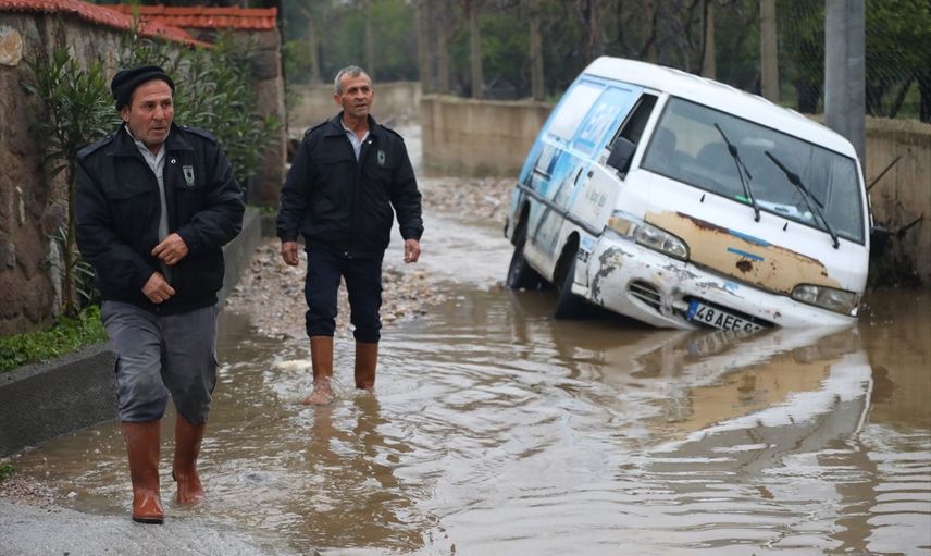 Muğla'nın Bodrum ilçesinde sağanak hayatı olumsuz etkiledi. Sağanak nedeniyle Bitez Mahallesi'ndeki Söğütlü Deresi'nin su seviyesi yükseldi. Park halindeki 2 araç dere yatağında mahsur kaldı.