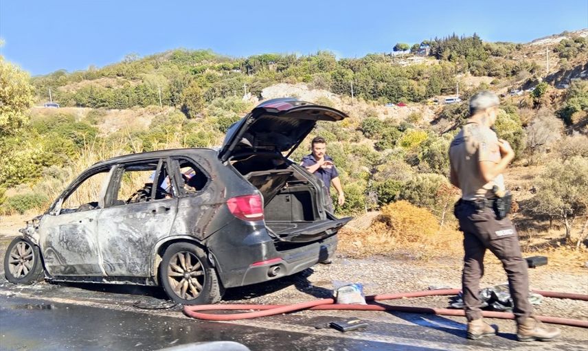 Muğla'nın Bodrum ilçesinde seyir halindeki cipte çıkan yangın söndürüldü. Yangında lüks cip kullanılamaz hale geldi.