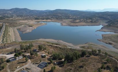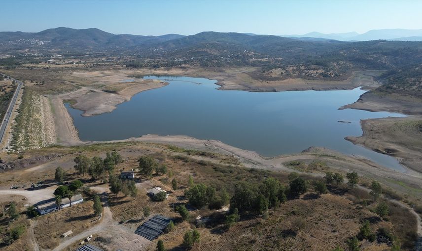 Muğla'nın Bodrum ilçesinde içme suyu kaynaklarında yaşanan sıkıntı nedeniyle planlı kesintilere geçileceği bildirildi. Su seviyesinin azaldığı Mumcular Barajı dron ile görüntülendi.