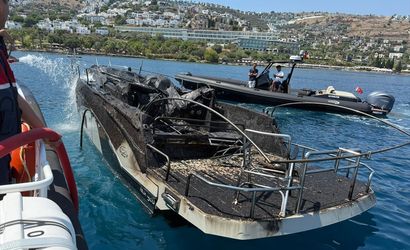 Bodrum Gündoğan'da demirdeki teknede yangın söndürüldü