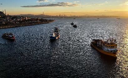 Bu anlar dron kamerasıyla kaydedildi; görüntüler, fırtına sonrası denizdeki toparlanma ve balıkçıların erken saatlerde çalışma rutinine dönüşünü yansıtıyor. Görüntülerde teknelerin limandan ayrılışı, Boğaz üzerindeki dağılımı ve sabah ışıklarıyla oluşan görsel etki ön plana çıkıyor. (VK-RU)