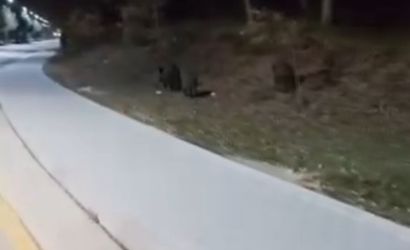 Bolu Abant İzzet Baysal Üniversitesi (BAİBÜ) kampüsünde akşam saatlerinde bir domuz sürüsü çimenlik alanda yiyecek ararken görüntülendi. O anlar, kampüs içinde dolaşan sürünün araçların korna sesine aldırış etmeden hareket etmesini de içeriyor.