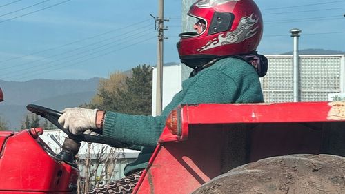 Bolu'da D-100'de kask ve eldivenle traktör kullanan kadın sosyal medyada ilgi gördü