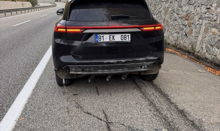 Bolu'da D-750'de elektrikli otomobil istinat duvarına çarptı; sürücü yara almadı