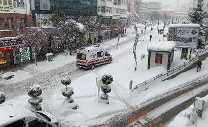 İzzet Baysal Caddesi üzerinde seyir halinde olan 112 Acil Sağlık ambulansı, karla kaplı zeminde ilerlemekte güçlük çekti. Araç, lastiklerinin sürekli patinaj yapması nedeniyle dakikalarca bulunduğu noktadan çıkamadı. O anlar çevredeki güvenlik kameraları tarafından kaydedildi.