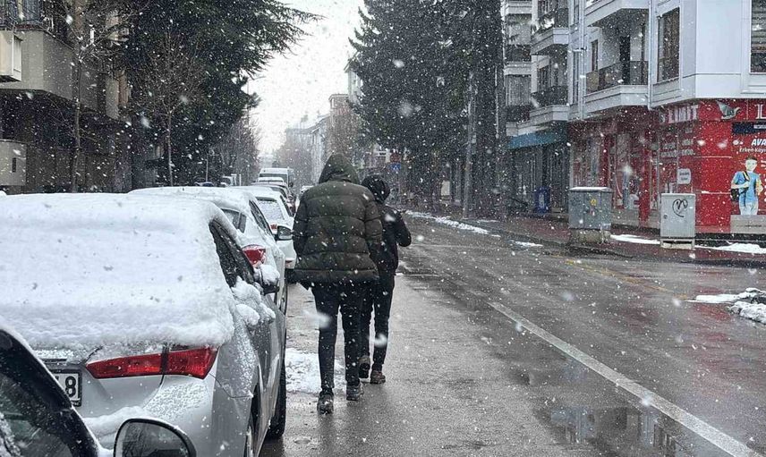Şehir merkezinde sabah saatlerinde artan yağış, araçların üzerini beyaza bürüdü. D-100 kara yolu Bolu geçişinde de lapa lapa yağan kar görüntülere yansıdı.
