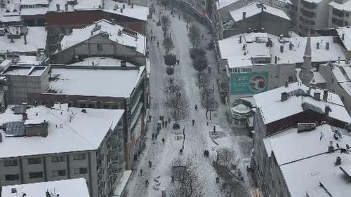 Bolu'da sabah başlayan ve aralıklarla süren kar yağışı kent merkezini beyaza bürüdü; beyaz örtü dron ile havadan görüntülendi.