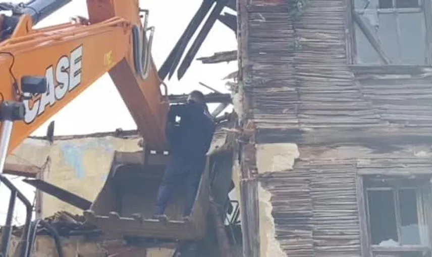 Metruk binada çökme sonrası yürütülen yıkım çalışmasında dikkat çeken müdahale