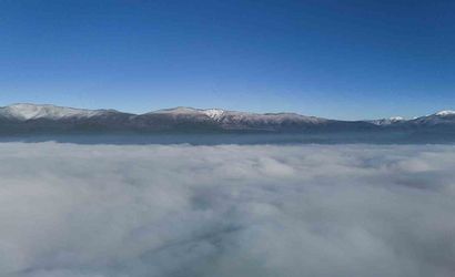 Görüntülerde şehir, alçak sis katmanının altında kalırken arka planda yer alan karlı dağlar ile oluşturduğu kontrast göze çarptı.