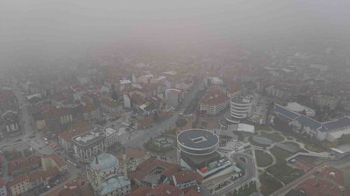 Bolu'da sabah sis tabakası şehir merkezini örttü — Dronla havadan görüntülendi