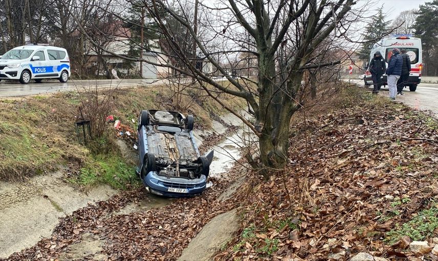 Bolu'da su kanalına devrilen otomobilin sürücüsü yaralandı.