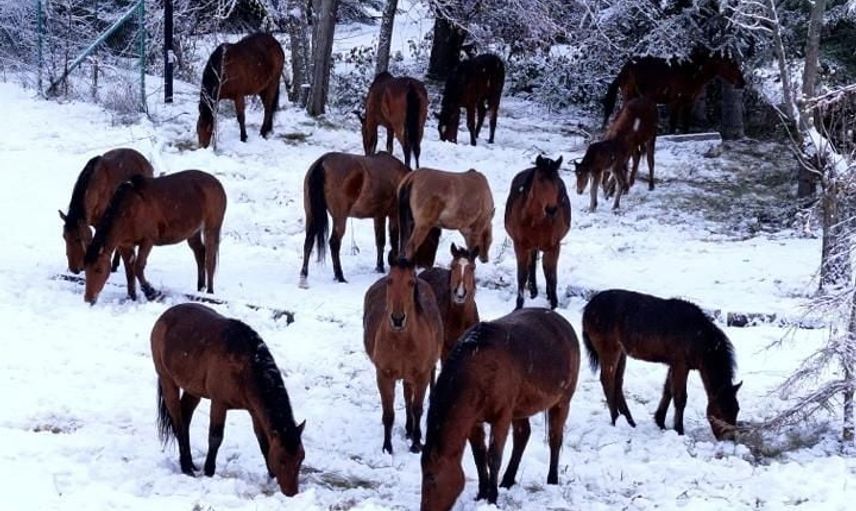 BOLU’DA KARLI HAVADA YİYECEK BULMAKTA ZORLANAN YABANİ YILKI ATLARI ŞEHİR MERKEZİNE İNDİ. VATANDAŞIN İHBARI ÜZERİNE BÖLGEYE GELEN BELEDİYE EKİPLERİ, OKUL BAHÇESİNE GİREN ATLARI SAMANLA BESLEDİ.