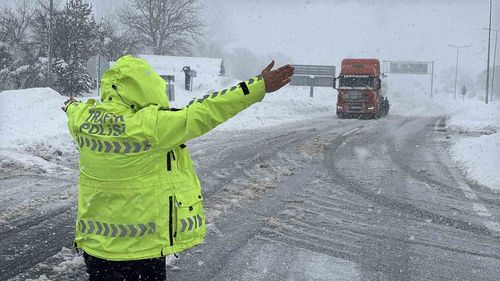 Bolu'da yoğun kar yağışı nedeniyle D-100 kara yolunun Bolu Dağı geçişi İstanbul istikameti tır ve kamyon trafiğine kapatıldı; ağır araçlar Elmalık Kavşağı'ndan TEM'e yönlendiriliyor.