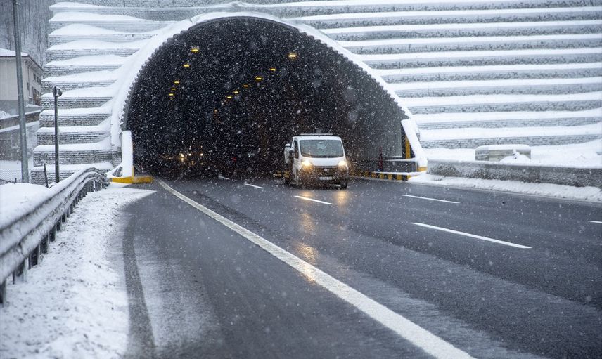 İstanbul ile Ankara arasında ulaşımı sağlayan Anadolu Otoyolu'nun Bolu Dağı Tüneli kesiminde kar etkisini gösteriyor.