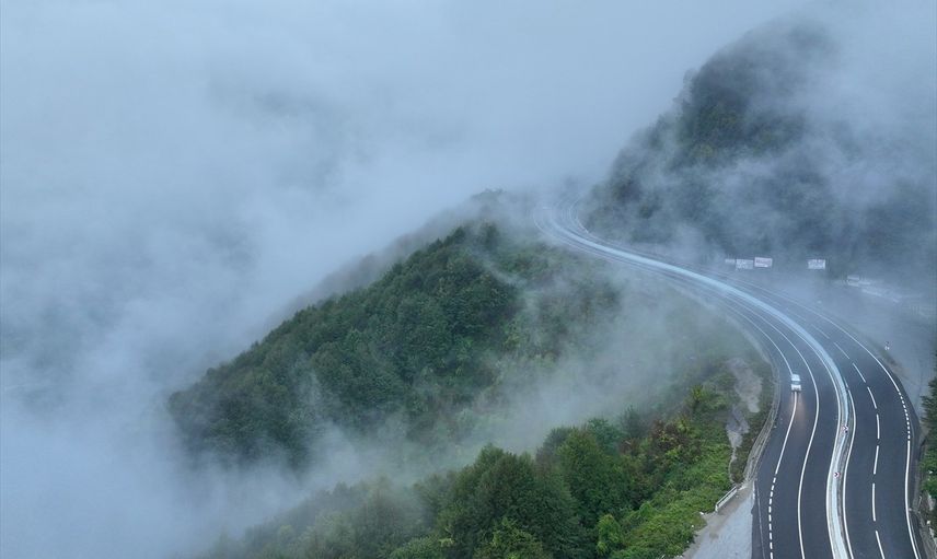 Ankara ve İstanbul arasındaki ulaşımı sağlayan önemli güzergahlardan D-100 kara yolunun Bolu Dağı kesiminde sis ve sağanak etkili oldu. Sis bulutunun oluştuğu bölgeler havadan görüntülendi.