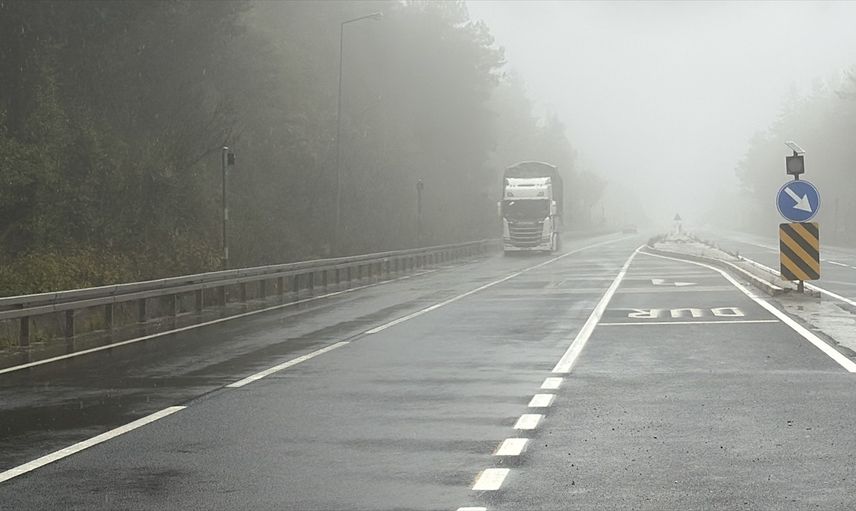 Ankara ile İstanbul arasındaki önemli güzergahlardan D-100 kara yolunun Bolu Dağı kesiminde sis ve sağanak etkili oluyor ve görüş mesafesini yer yer düşürüyor.