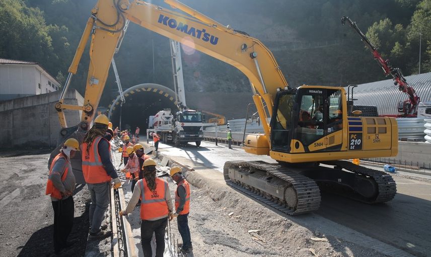 Anadolu Otoyolu'nun Bolu Dağı Tüneli İstanbul istikametinde heyelan riskini ortadan kaldırmak amacıyla başlatılan tünel uzatma projesinde çalışma sürüyor.
