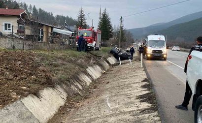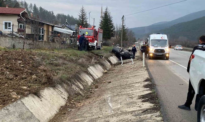 Edinilen bilgiye göre, sürücüsünün ismi öğrenilemeyen otomobil sollama yaptığı esnada kontrolden çıktı. Sürücünün direksiyon hakimiyetini kaybettiği otomobil, yol kenarında bulunan menfeze savrularak takla attı.