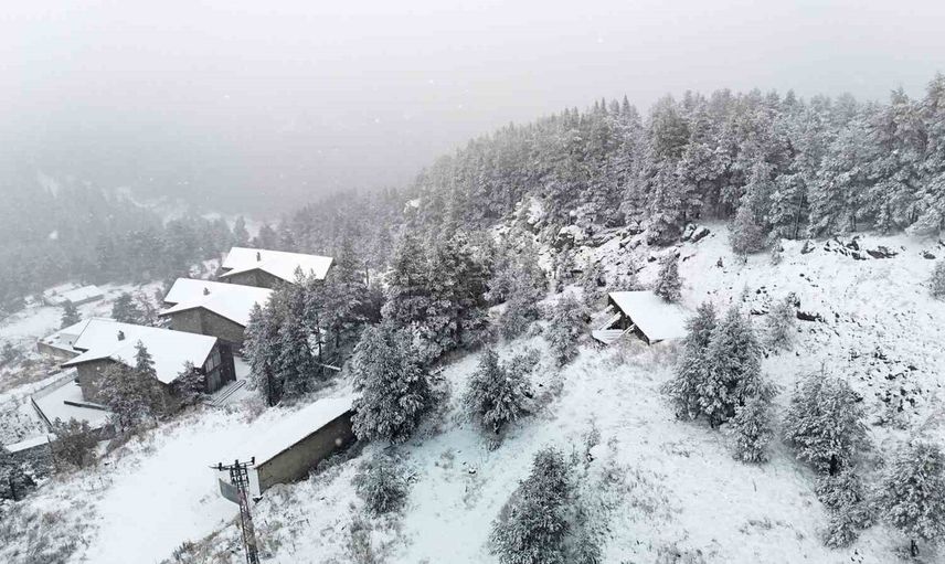 Kartalkaya bölgesi beyaz örtüyle kaplanırken, bölge dronla havadan görüntülendi.