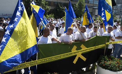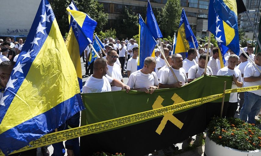 Bosna Hersek'te 500'den fazla madenci, düzenli maaş ve emeklilik koşullarının iyileştirilmesi talebiyle başkent Saraybosna'da gösteri düzenledi.