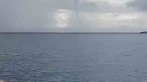 Çanakkale'nin Bozcaada ilçesi açıklarında öğle saatlerinde denizde hortum görüldü; cep telefonu kameralarına yansıyan hortum kısa süre sonra kayboldu.