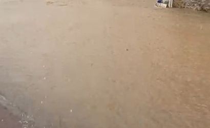 Bozcaada’da sağanak yağış cadde ve sokakları göle dönüştürdü