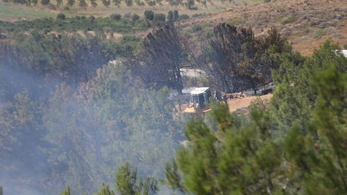 Bozcaada'daki tarım arazisinde çıkan yangına karadan ve havadan müdahale ediliyor.