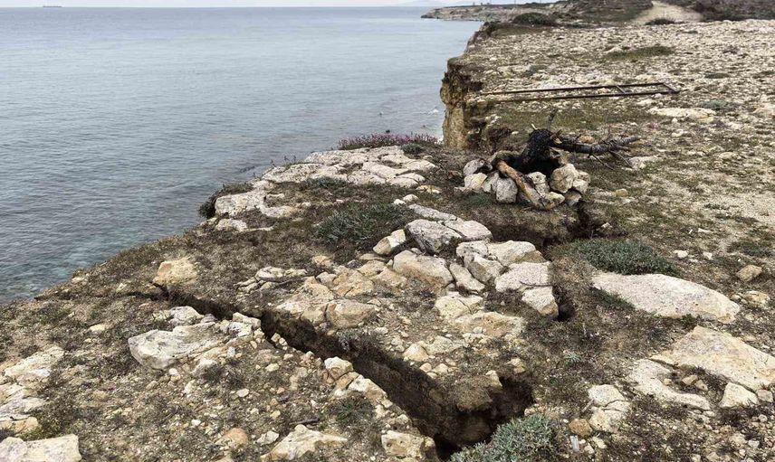 Bozcaada Polente Burnu'nda falezlerde çatlak ve çökmeler