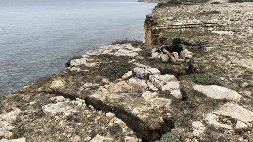 Bozcaada Polente Burnu seyir alanında kıyı falezlerinde çatlaklar, kısmi çökmeler ve kaya düşmeleri görüldü; yaklaşık 15 metre yüksekliğindeki uçurumda güvenlik önlemi yok.