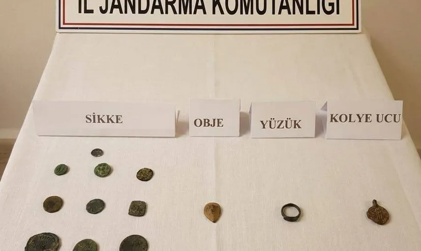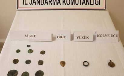 Şüphelilerin üzerlerinde yapılan aramalarda; 6 adet Roma dönemine ait bronz sikke, 2 adet Osmanlı dönemine ait bronz sikke, 2 adet Bizans dönemine ait gümüş sikke, 1 adet Roma dönemine ait bronz yüzük, 2 adet Roma dönemine ait altın kolye ucu ile 1 adet Bizans dönemine ait altın obje ele geçirildi.