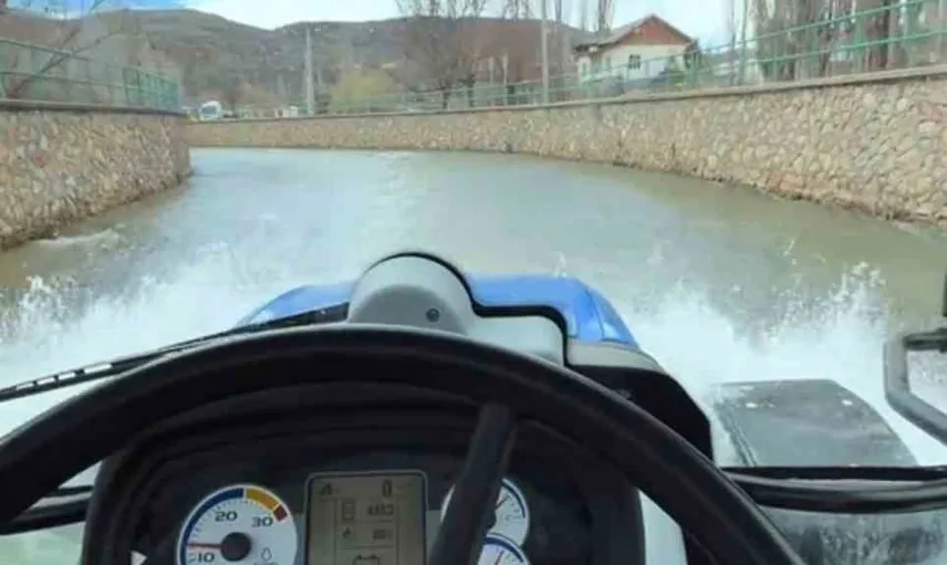Konya’nın Bozkır ilçesinde çiftçi Ramazan Arıcı’nın, temizlik amacıyla traktörüyle Çarşamba Kanalı yatağına inmesi çevredeki vatandaşların ve sosyal medya kullanıcılarının ilgisini çekti. Traktörün su içerisindeki ilerleyişi, izleyenler tarafından adeta bir teknenin hareketine benzetildi.