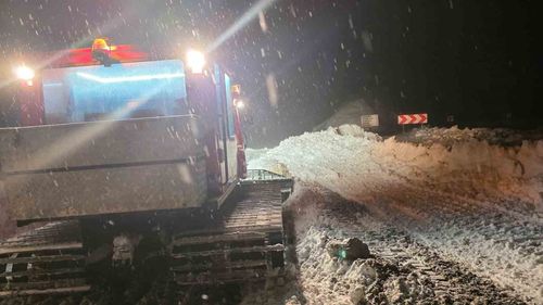 Kastamonu Bozkurt Tezcan köyünde yolu kar nedeniyle kapanan düşük tansiyon hastası, AFAD ve UMKE ekiplerinin 5 saatlik çalışmasıyla paletli araçla hastaneye ulaştırıldı.