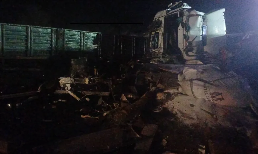 Çarpmanın etkisiyle araçta direksiyon hâkimiyeti kayboldu. Araç, emniyet şeridinde park halinde bulunan 34 EVM 998 plakalı kamyona ve kamyonun önünde duran 06 DPH 984 plakalı çekici ile bağlı 06 EBJ 908 plakalı dorsesine çarparak durabildi.