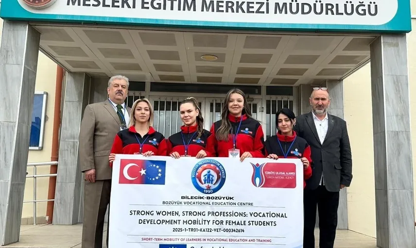 Bilecik’in Bozüyük ilçesinde yer alan Mesleki Eğitim Merkezi, Avrupa Birliği destekli yeni bir Erasmus+ faaliyetiyle öğrencilerini yurtdışına gönderdi. Yürütülen 2025-1-TR01-KA122-VET-000342614 numaralı "Güçlü Kadınlar, Güçlü Meslekler: Kız Öğrenciler İçin Mesleki Gelişim Hareketliliği" projesi kapsamında katılımcılar Almanya’nın Bremen kentine uğurlandı.