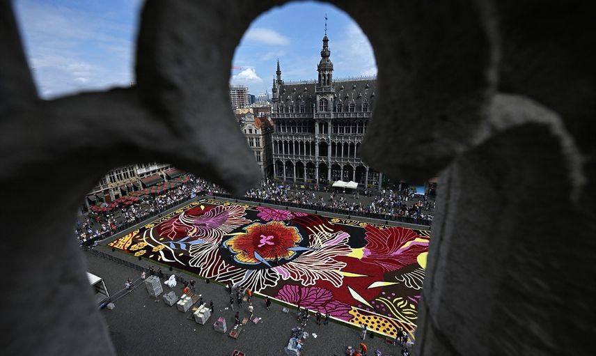 Belçika'nın başkenti Brüksel'in tarihi Grand Place meydanına "çiçeklerden yapılan halı" döşendi. Yaklaşık 650 bin dalya çiçeği, çimen ve ağaç kabuğu kullanılarak oluşturulan 1680 metrekarelik halı, sokak sanatçısı Oceane Cornille tarafından tasarlandı. Turistlerin ilgi odağı olan 70 metre uzunluğunda ve 24 metre genişliğindeki halı, 100 gönüllü tarafından yaklaşık 6 saatte tamamlandı.