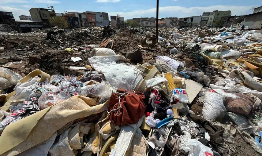 İZMİR'İN BUCA İLÇESİNDE MOBİLYACI ESNAFININ YOĞUN OLARAK BULUNDUĞU SANAYİ BÖLGESİNDEKİ BOŞ ARAZİNİN ATIK YIĞININA DÖNÜŞMESİ ÇEVREDEKİLERİN TEPKİSİNE NEDEN OLDU.