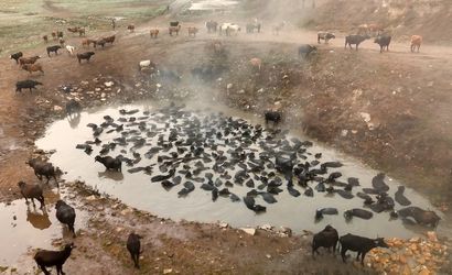 Bitlis'in Güroymak ilçesine bağlı Budaklı köyünde, temizlenmeleri için kaplıcaya götürülen mandaların sıcak sulardaki görüntüleri dronla kaydedildi. Görüntüleri çeken isim, akademisyen ve fotoğraf sanatçısı Veysel Akşahin olarak açıklandı.