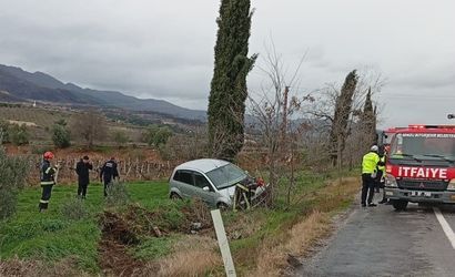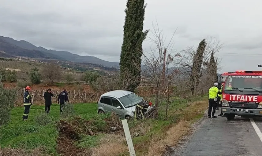 Denizli'nin Buldan ilçesinde, yağmur nedeniyle kayganlaşan yolda 20 ADR 254 plakalı otomobil, sürücü M. S.'nin direksiyon hâkimiyetini kaybetmesi sonucu kontrolden çıkarak üzüm bağına savruldu.