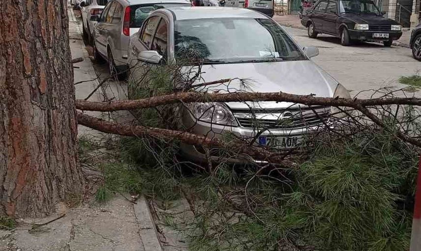 Fırtına, Yeni Mahalle ile Cumhuriyet Mahallesi arasındaki yol hattında bulunan çam ağaçlarının dallarını kopardı. Yola savrulan bu dallar, park halindeki ve seyir halindeki bazı araçlarda maddi hasara yol açtı.