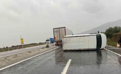 Denizli’nin Buldan ilçesinde, Manisa istikametinden Denizli istikametine seyir halindeyken kontrolden çıkan minibüsün yolun sağına devrilmesi sonucu kaza meydana geldi.