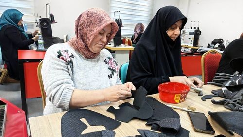 Bünyan'da Hanımeli Kadın Kooperatifi halıdan saya üretimine geçti; günlük hedef 500 çift