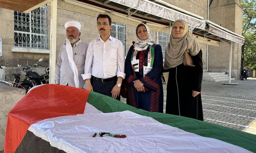 İran'ın başkenti Tahran'da suikasta uğrayan Hamas Siyasi Büro Başkanı İsmail Heniyye için Burdur Ulu Camisi avlusunda kılınan gıyabi cenaze namazına katılan Filistinli Wıam Abu Mansour, AA muhabirine açıklamalarda bulundu. Filistinli Wıam Abu Mansour (ortada), AK Parti Burdur Milletvekili Adem Korkmaz (sağda) ve Burdur Müftüsü Ali Hayri Çelik'le (solda) hatıra fotoğrafı çektirdi.